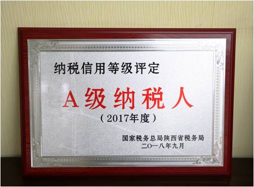 我國納稅信用等級分為A、B、M、C、D五級,A級為最高等級,是企業(yè)依法誠信納稅、積極配合的重要標志,對樹立企業(yè)信譽、拓寬業(yè)務有著重要意義。2018年上半年,國家稅務總局西安碑林區(qū)稅務局以我公司日常納稅評估和稅源比對為基礎,對公司納稅信用情況進行綜合考評,經(jīng)過區(qū)、市、省稅務機構層層考核和篩選,最終我公司被評定為“陜西省2017年度納稅信用A級納稅人”。