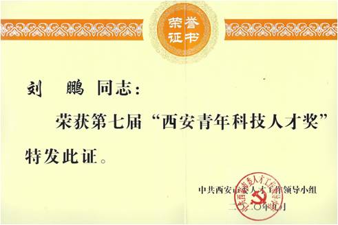 科技創(chuàng)新人才先行——我公司劉鵬同志榮獲“第七屆西安青年科技人才獎(jiǎng)” 近日,由西安市委組織部、市人社局、市科協(xié)組織開(kāi)展的第七屆西安青年科技人才獎(jiǎng)評(píng)選表彰活動(dòng)落下帷幕,9月25日上午,市科協(xié)舉辦了西安市第十七屆學(xué)術(shù)金秋活動(dòng)主場(chǎng)報(bào)告會(huì)暨第七屆青年科技人才獎(jiǎng)?lì)C獎(jiǎng)典禮,我公司劉鵬同志喜獲“第七屆西安青年科技人才獎(jiǎng)”。