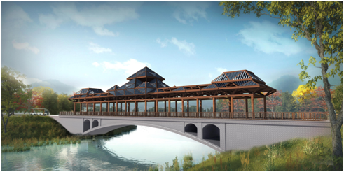 考慮到景觀廊橋的特殊性,三分院抽調精干技術力量組成專業項目設計組,大膽創新,精心設計,發揮全院技術專長,實現了四座廊橋景觀藝術性與民族特色的有機融合。